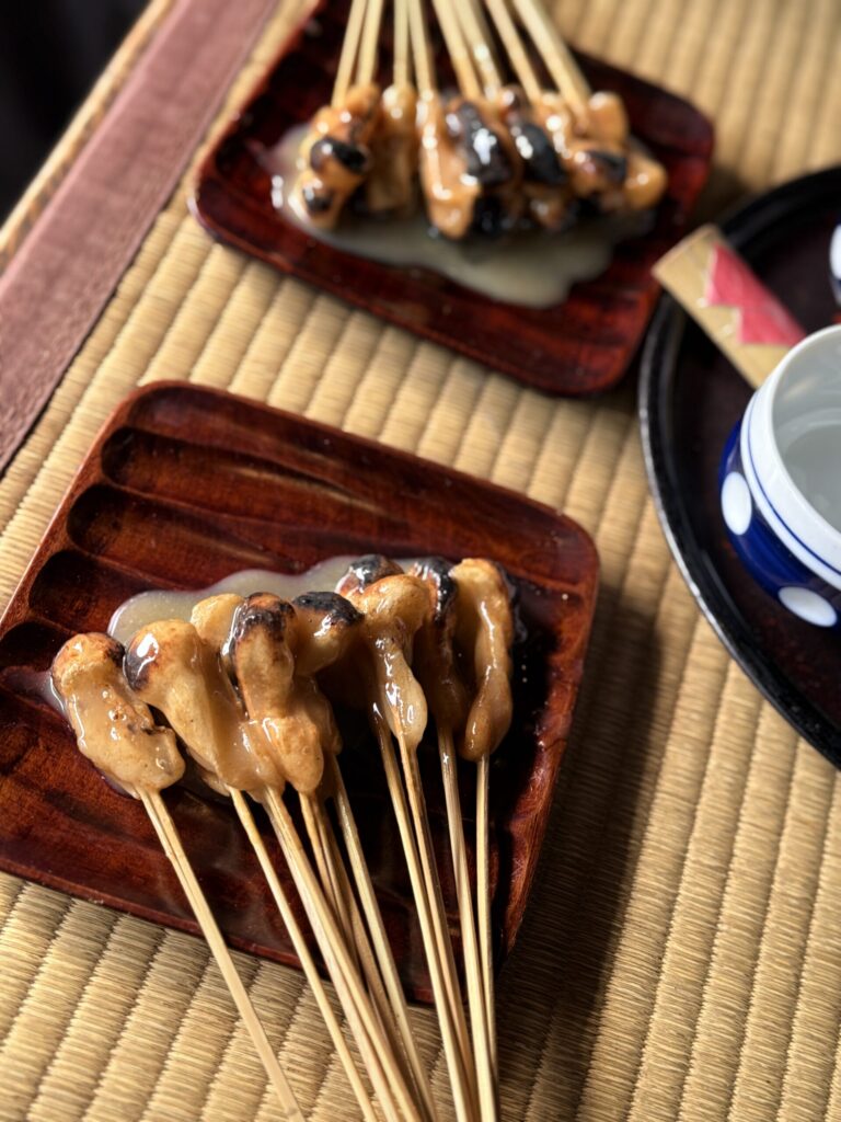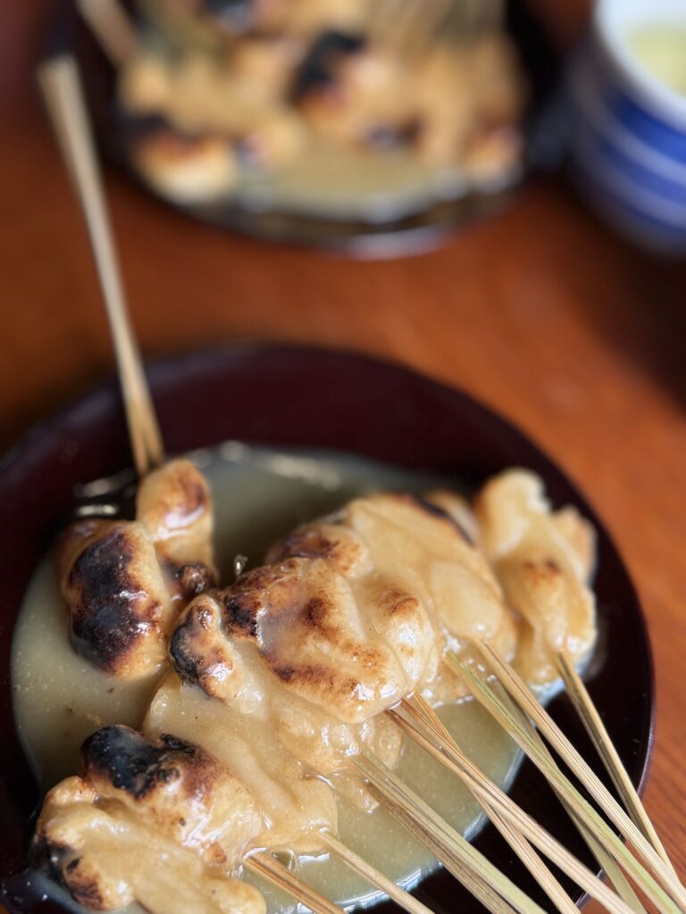 最後に震えるほど美味しい大好きな「あぶり餅」を♬「こんな美味いもの喰って太るんならやむなし!!」と1人3皿ずつ食べちゃいました。今も目をつぶると、程よい焦げ具合のお餅と白味噌ベースのたれの美味しさがうっとり心に蘇ります。